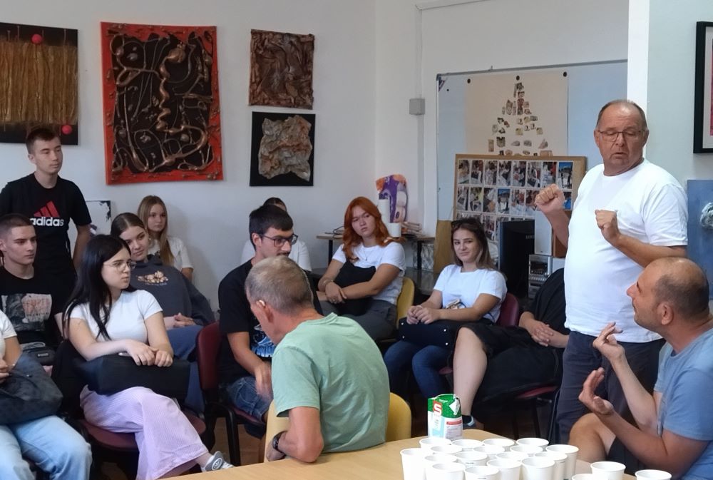 – U početku su Udrugu činili roditelji koji su na ovaj način brinuli o svojoj djeci i borili se za njihova prava. Danas smo velika organizacija s puno zaposlenih, pa iako smo već puno napravili po pitanju rušenja predrasuda vezanih za osobe s intelektualnim teškoćama, posao još uvijek nije gotov. Ono što želimo je da se svakoga poštuje i da se svakome omogući dostojanstven život. Primjerice, nekoć članovi nisu nikad išli na more, a kada sam ih počeo voditi, ljudi su doslovno bježali s plaže. Sada idu svugdje i rijetko se desi da netko neprimjereno reagira, kazao je Catela te pitanjima potaknuo razgovor i razmjenu s učenicima.