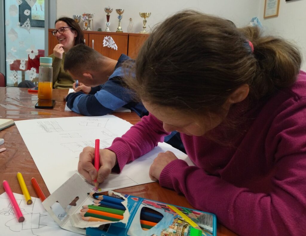 Uz pripremu slika za predstojeću izložbu koja će biti otvorena 20. veljače u Čitaonici Kluba umirovljenika Pula, ovog smo tjedna pripremili i par maski koje su prodefilirale na tradicionalnim maškarama u Centru za inkluziju Labin. Na radionici nam se ponovo pridružili i naša volonterka Sandra, psihologinja, koja je popričala s polaznicima i nastavila raditi na jačanju njihovih socijalnih vještina. Što je od radova dovršeno, nastavljeno ili započeto, pogledajte u galeriji slika!